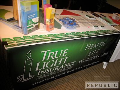 As the designers and producers of all True Light Insurance's marketing collateral pieces, (i.e.: Business cards & Postcard/flyers) we set-out to design their table-banner display in similar fashion. The end-result: a cohesive/awesome looking message for the hundreds of attendees of the Latino Business Expo.